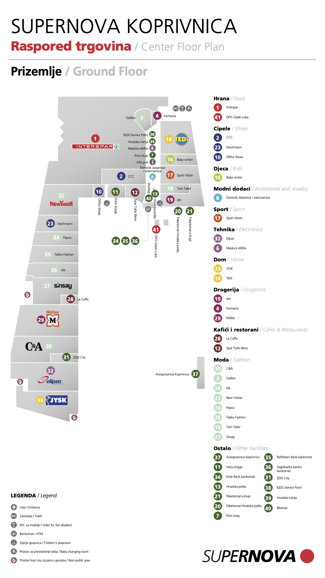 Ovdje možete pogledati mapu shopping centra Supernova Koprivnica. Kliknite i provjerite naše trgovine i usluge!